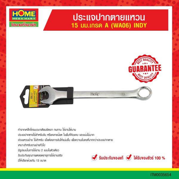 ประแจปากตายแหวน 15 มม.เกรด A (WA06) “INDY”