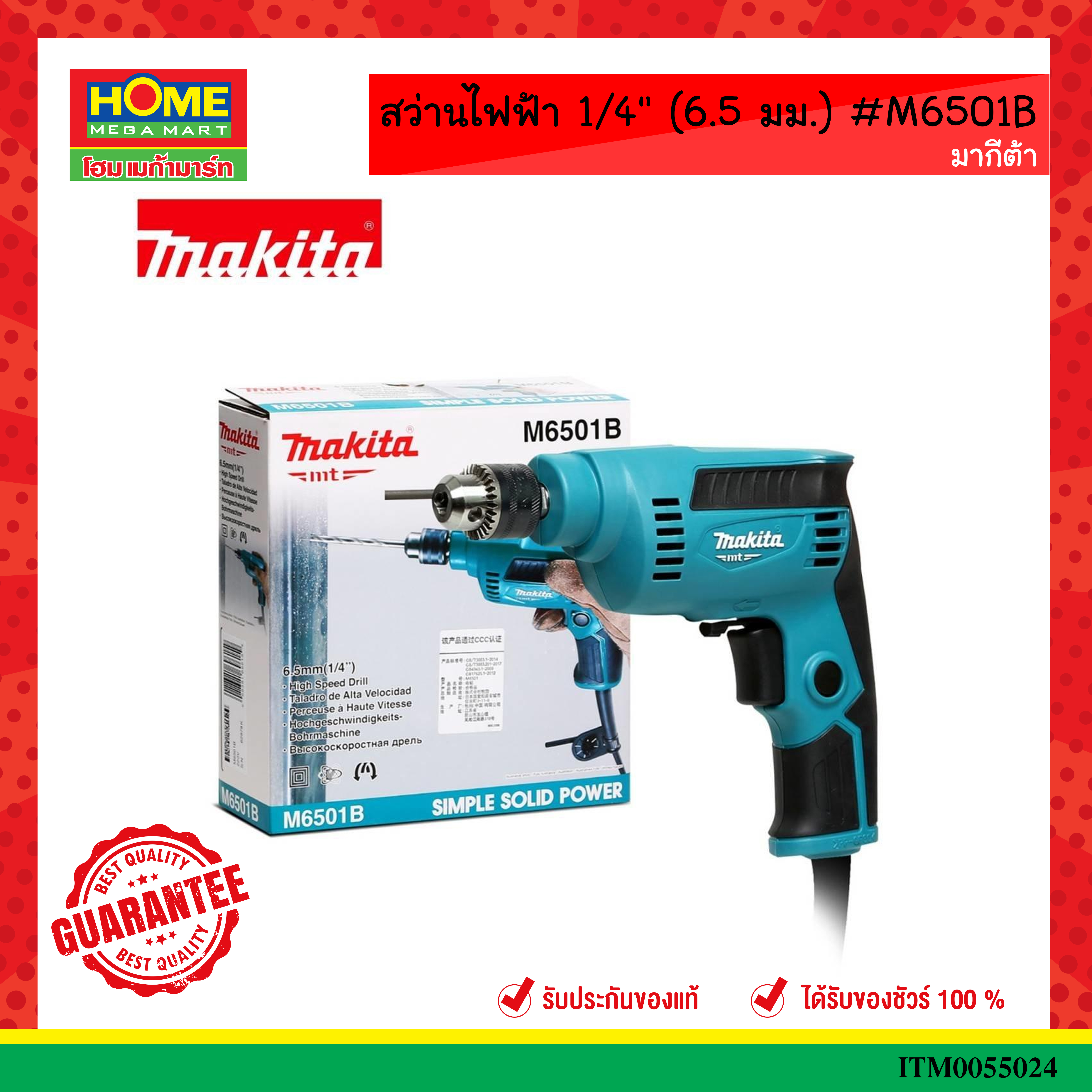 สว่านไฟฟ้า 1/4″ (6.5 มม.) #M6501B มากีต้า