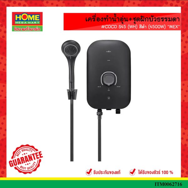 เครื่องทำน้ำอุ่น+ชุดฝักบัวธรรมดา #COCO S45 (MB) สีดำ (4500W) “MEX”
