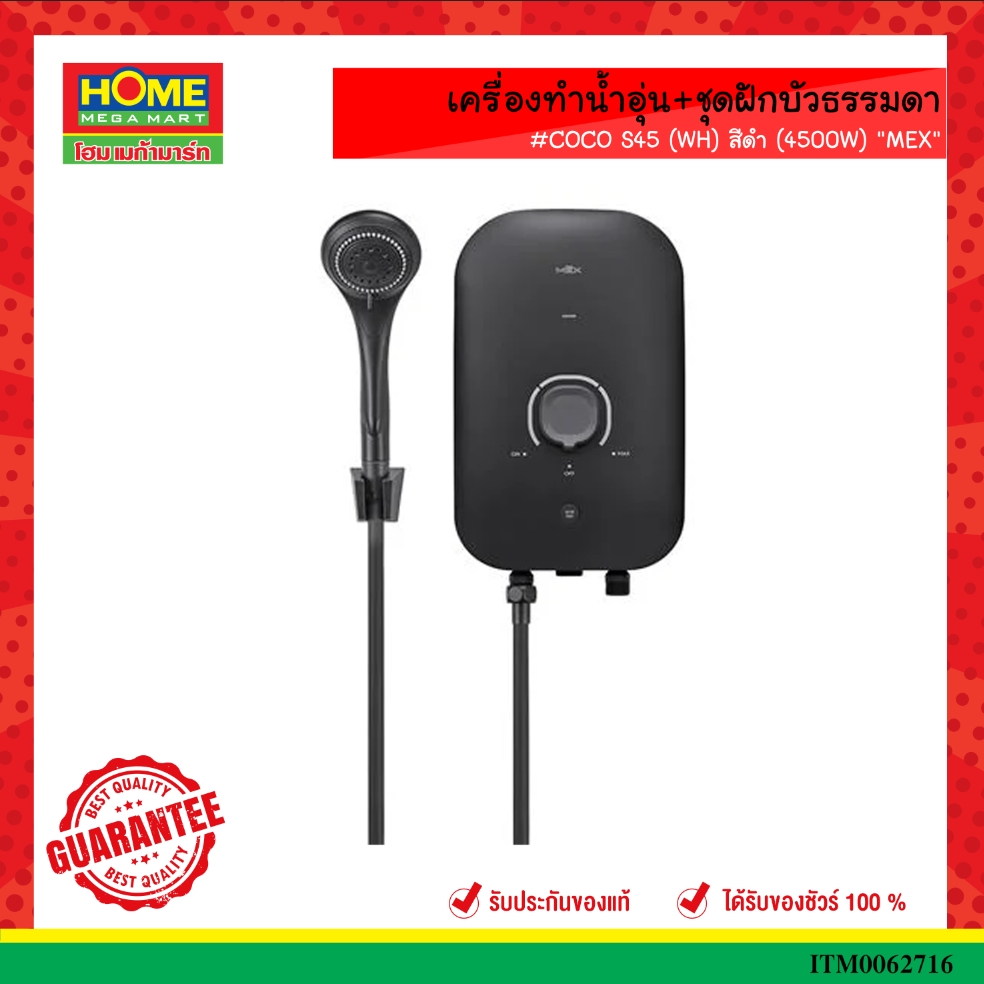 มาเป็นคนแรกที่วิจารณ์ “เครื่องทำน้ำอุ่น+ชุดฝักบัวธรรมดา #COCO S45 (MB) สีดำ (4500W) “MEX””
