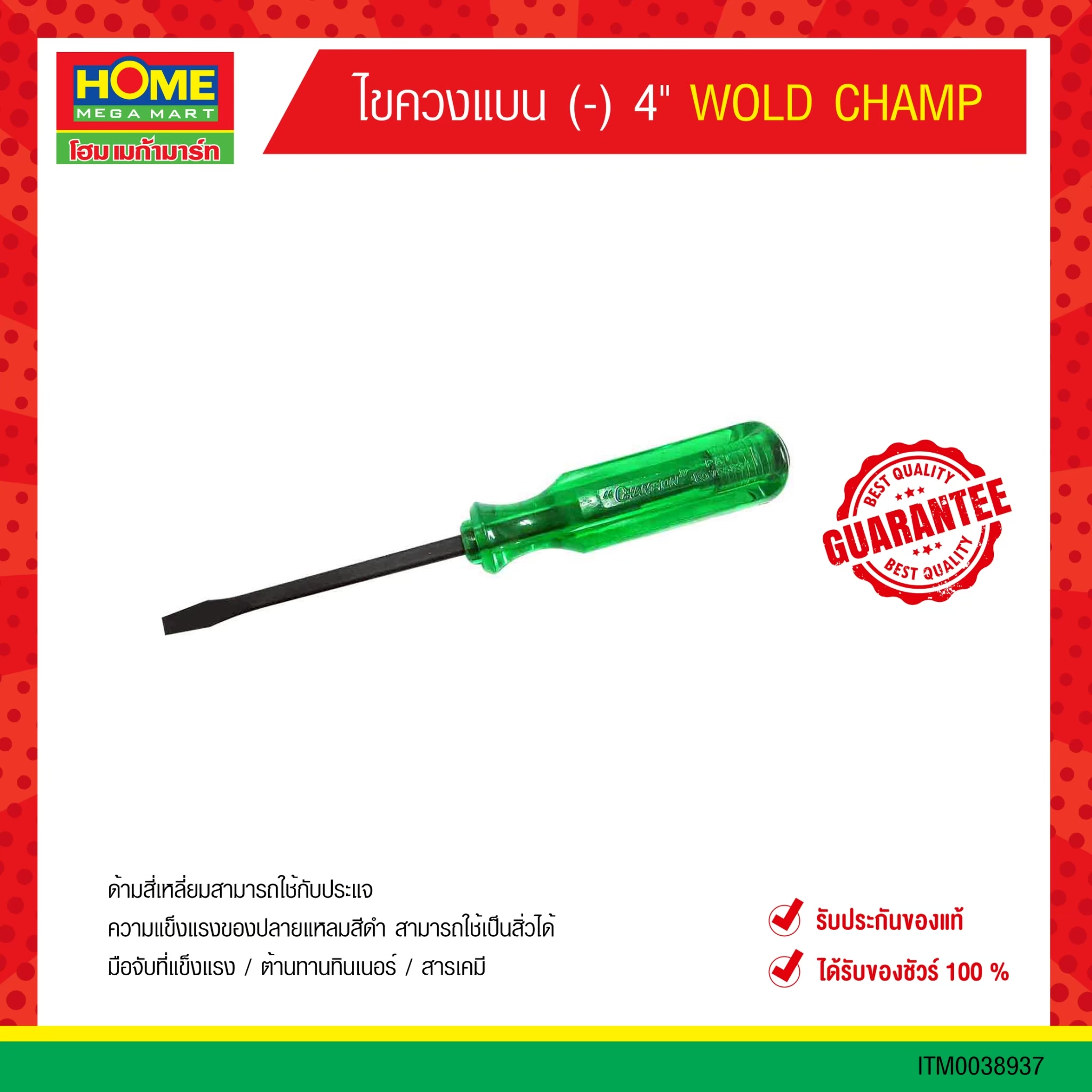 ไขควงแบน (-) 4″ WOLD CHAMP 1 โหล